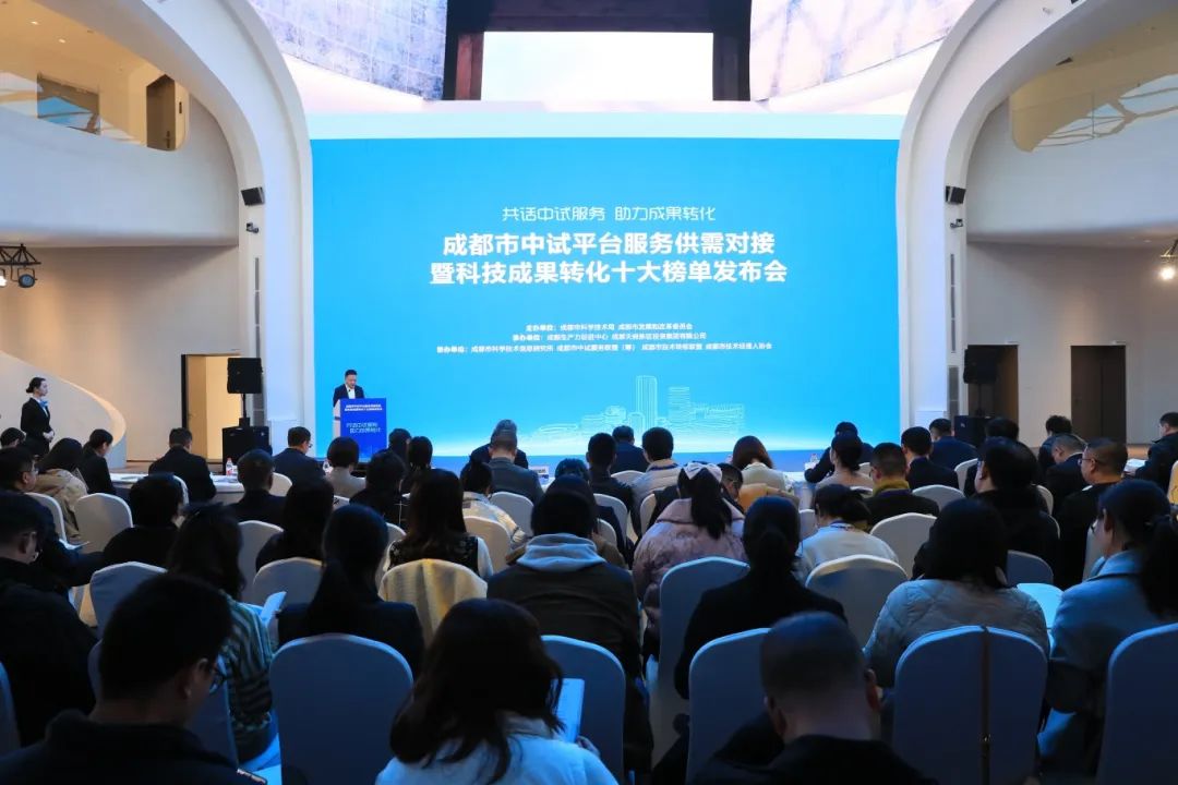 2024年3月14日,成都市中试平台服务供需对接暨科技成果转化十大榜单发布会成功举行。本次活动由成都市科学技术局、成都市发展和改革委员会主办,成都生产力促进中心、成都天府新区投资集团有限公司承办。现场汇集了高校院所、科研机构、链主企业、中试平台和专业机构,共话中试服务,助力成果转化。
